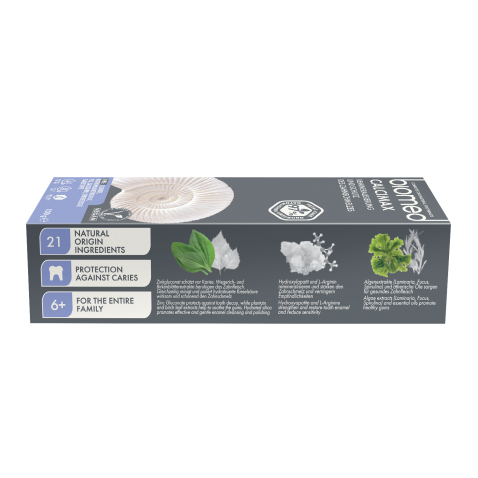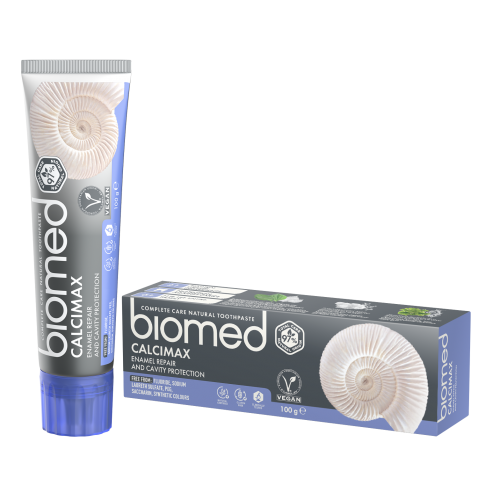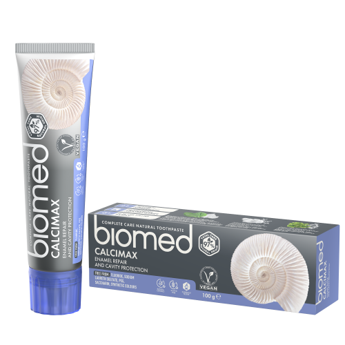 Biomed CALCIMAX rinforza il dentifricio con sale di mari antichi e idrossiapatite di calcio per proteggersi dalla carie e remineralizzare efficacemente lo smalto. Denti forti sviluppano il carattere!